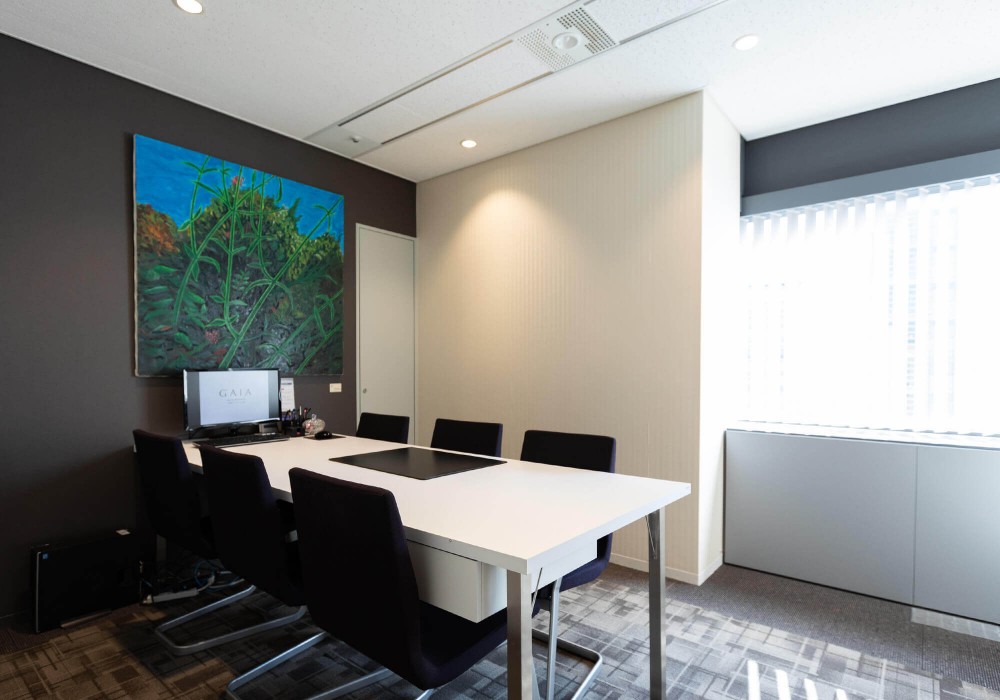 新宿本店オフィス受付。オフィスには、6つの面談スペースがあります。